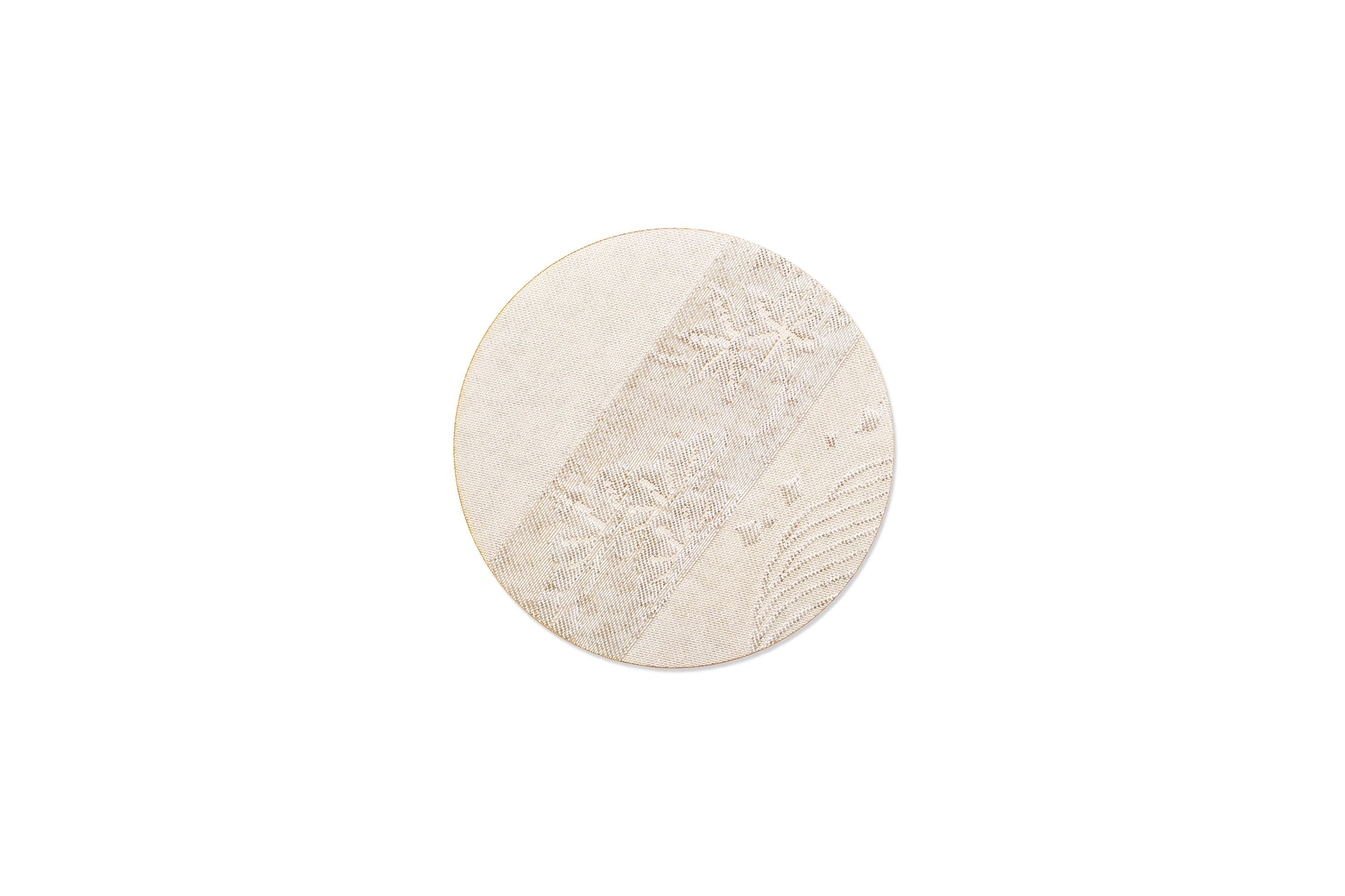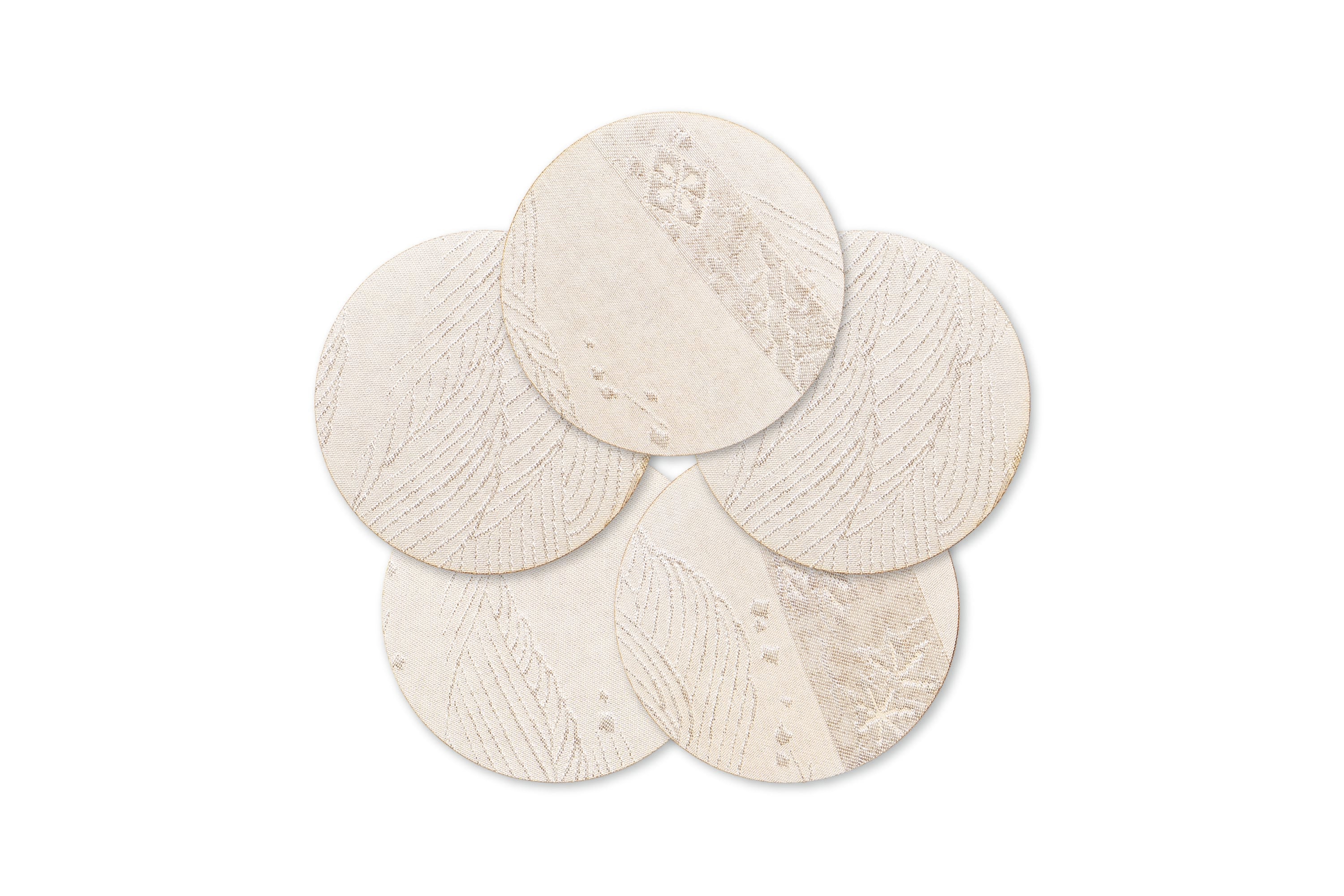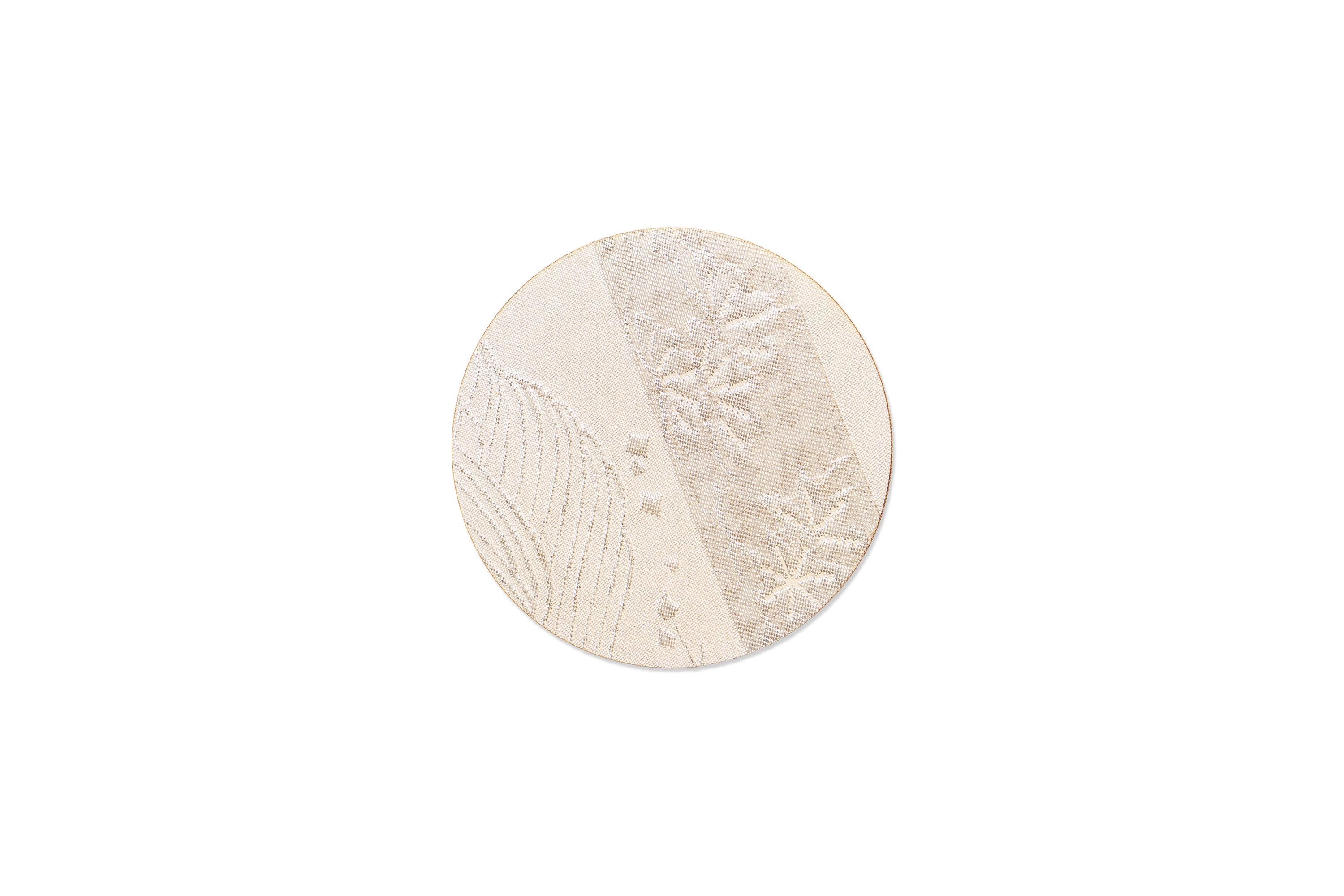 コースター(丸小)5枚セット/古代錦名古屋帯/"名物裂列集"/白銀/OCOS-NKOD-M100-C43-14*5