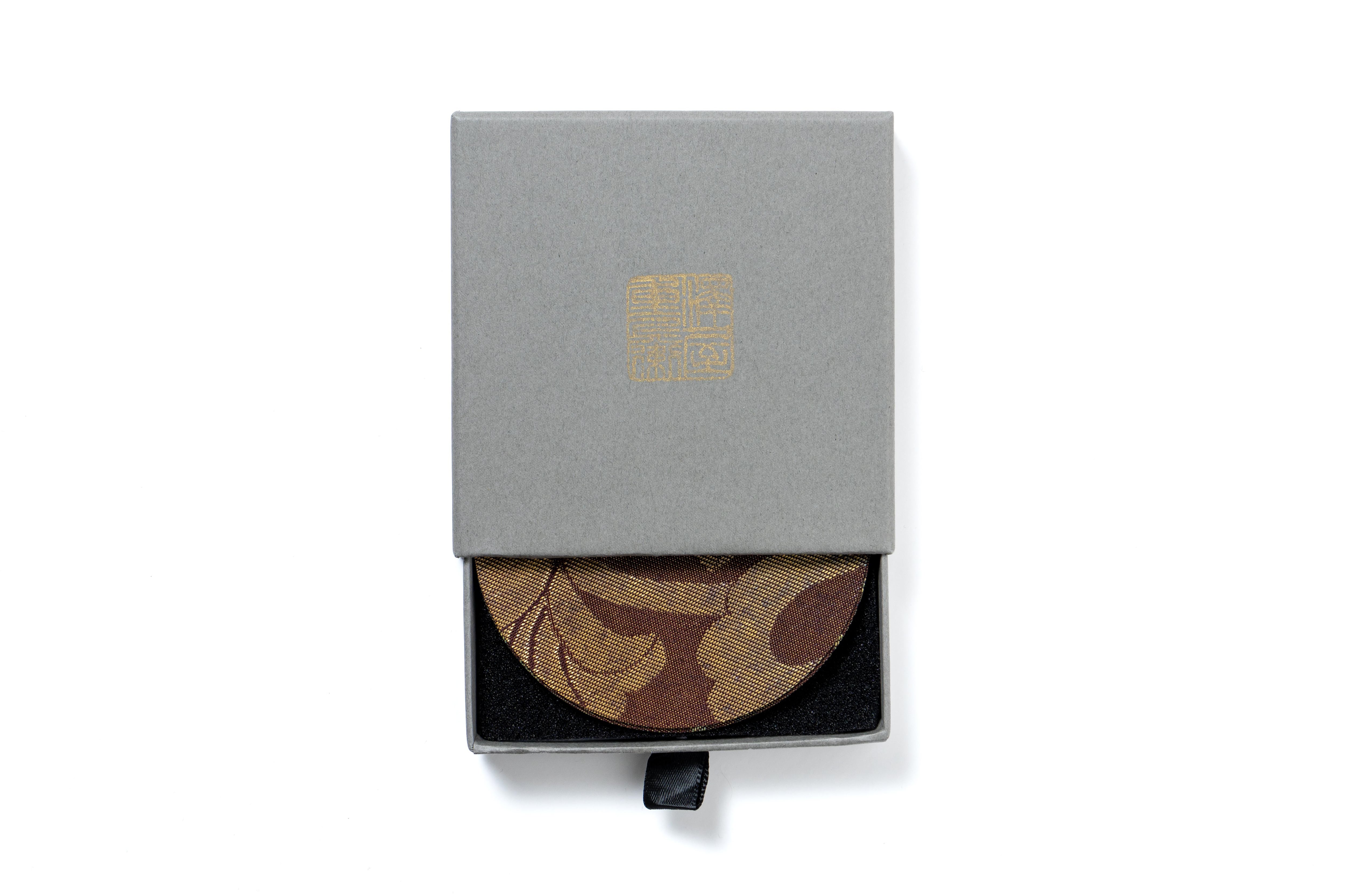 澤屋の引箔の帯「古代錦」を使用した、丸小サイズのコースター5枚セットです。