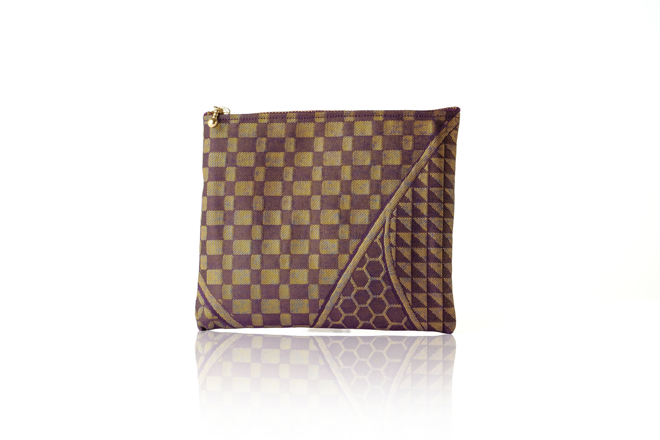 ⚫️澤屋の古代錦袋帯を使用した美しいポーチです。『江戸小紋』紋様、紫色の帯地で仕上げられております。伝統的な日本の美意識を感じさせるデザインです。